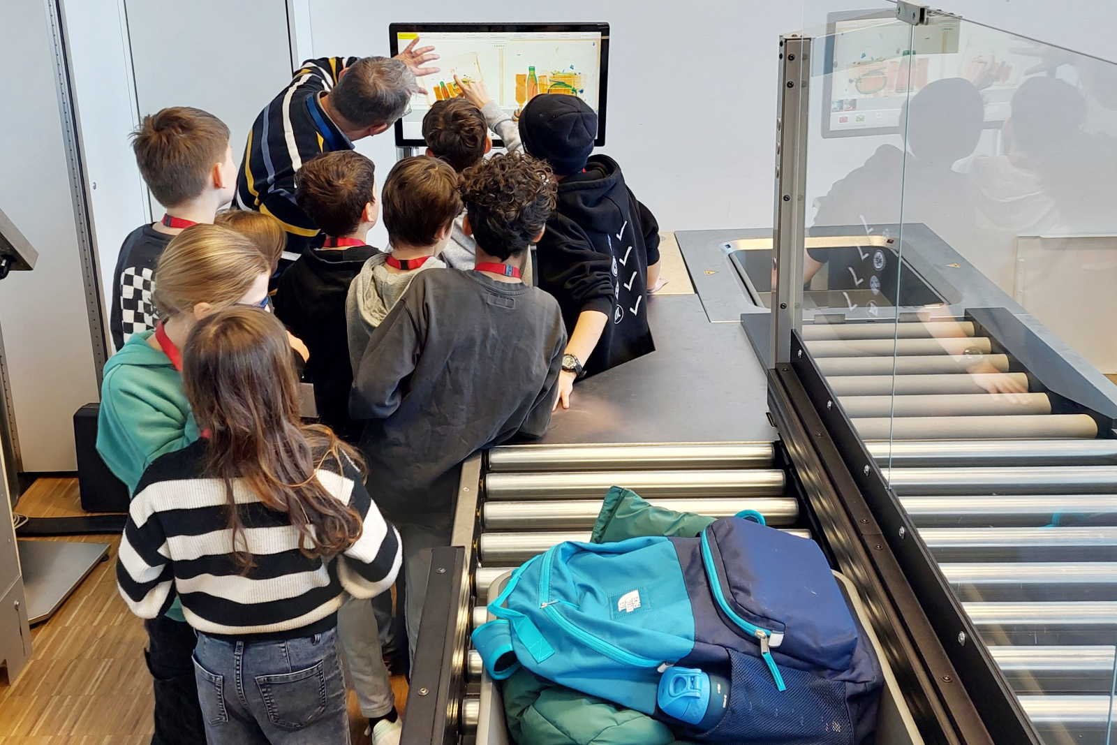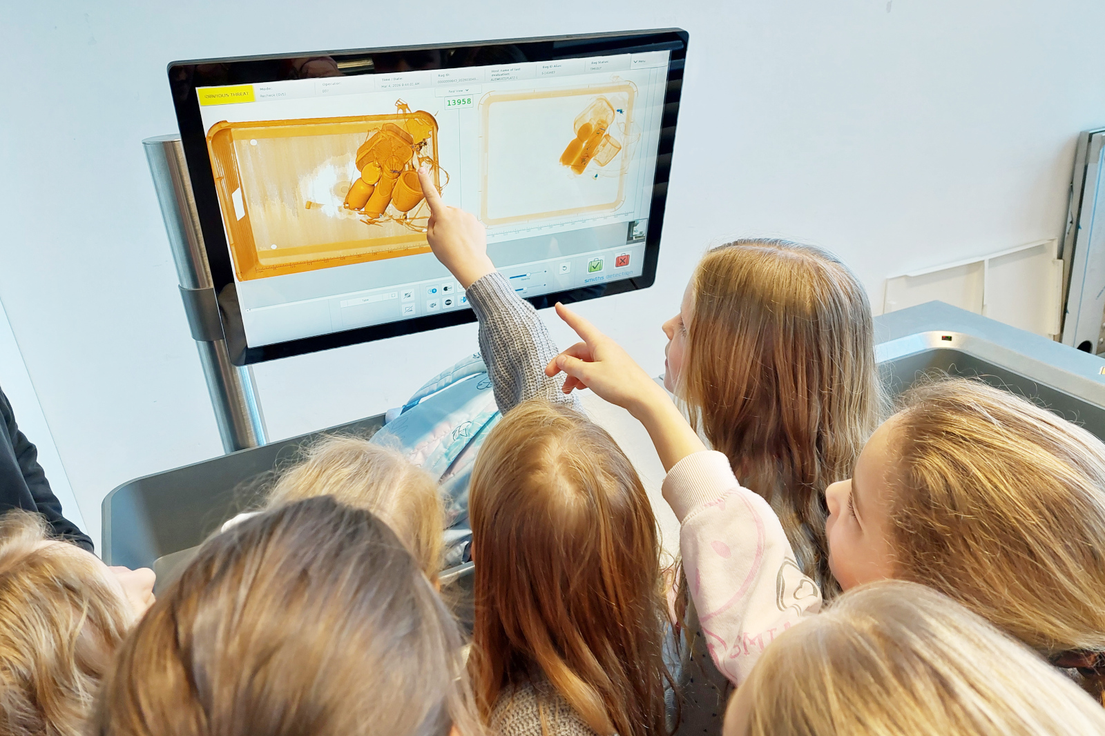Die „Wissens­de­tektive“ – Grundschüler:innen im Alter von 8 bis 10 Jahren – erhielten spannende Einblicke in die Produktion von großen Scannern, wie sie an jedem Flughafen weltweit stehen. Die Kids scannten ihre eigenen Rucksäcke an einer CTiX/iLane-Röntgen­anlage von Smiths Detection und experi­men­tierten mit kleinen physi­ka­li­schen Versuchen.